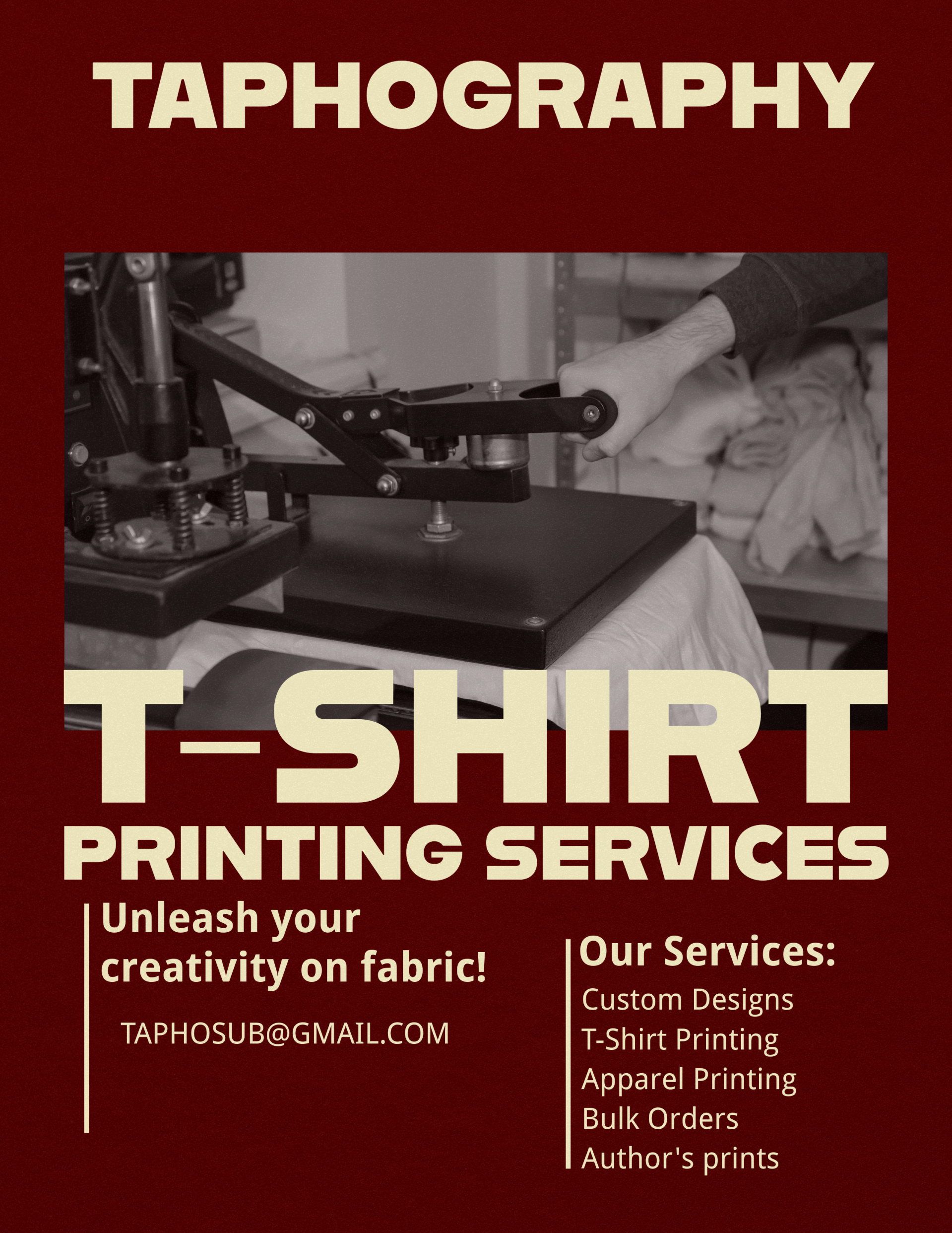 Bienvenue chez Taphography, votre partenaire de confiance pour l'impression DTF (Direct-to-Film) de haute qualité . Nous transformons vos idées en créations vibrantes avec une précision et une durabilité exceptionnelles. Que vous soyez un particulier, une entreprise ou un créateur, découvrez la facilité de donner vie à vos designs textiles. Notre engagement : une qualité impeccable, un service client hors pair et une innovation constante. Nous sommes ravis de vous accompagner dans tous vos projets de personnalisation.